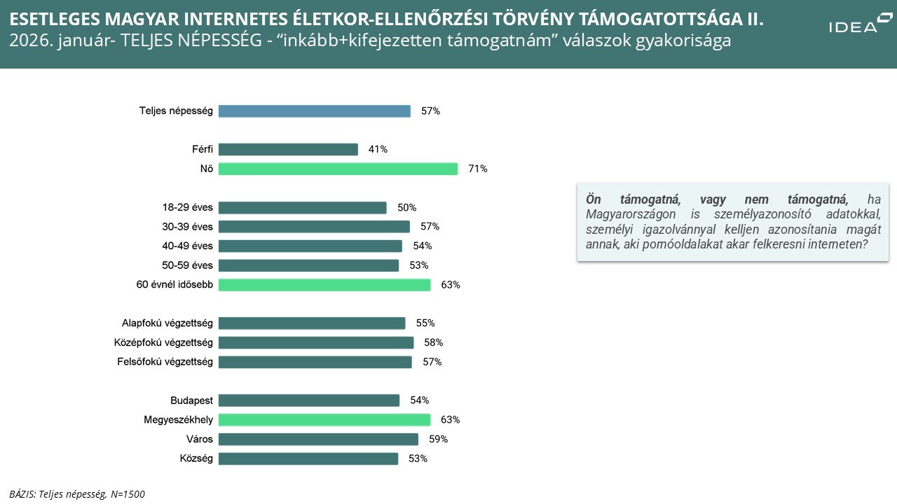 A kutatás egy másik érzékeny területet is vizsgált: azt, hogy mekkora lenne a támogatottsága annak, ha az internetes pornóoldalakat csak személyazonosítás mellett lehetne felkeresni. Ebben az esetben is többségben vannak a támogatók, és érdekes módon a két kérdés erősen összekapcsolódik.