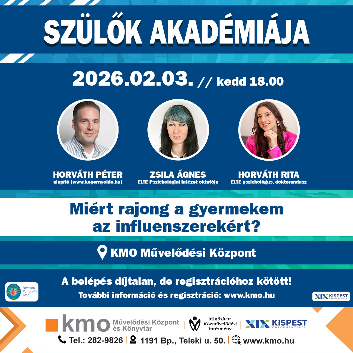 Február 3-án (kedd) 18:00-tól olyan előadásra kerül sor a KMO Művelődési Központban (1191 Budapest, Teleki utca 50.), amely korunk egyik legösszetettebb szülői dilemmáját járja körül: