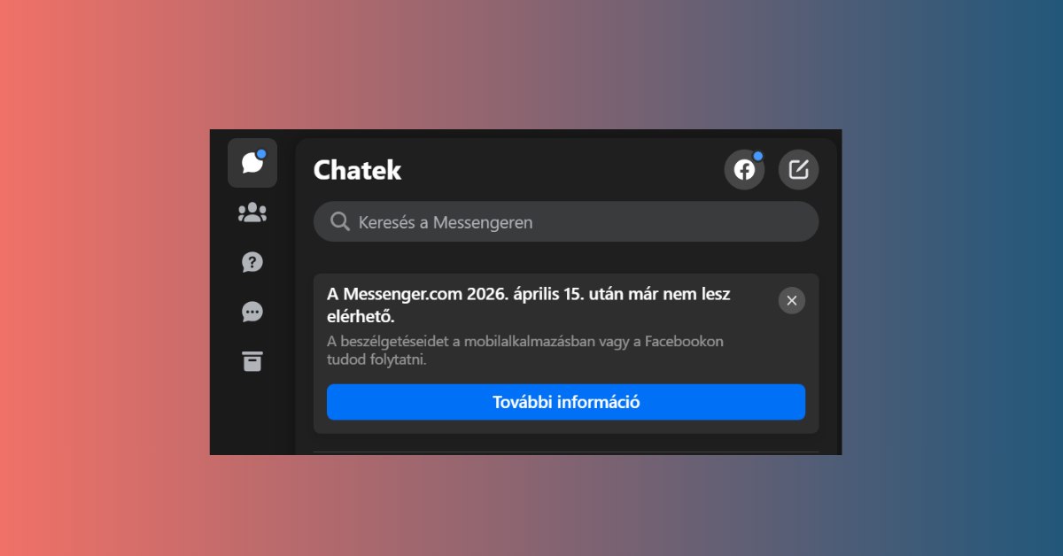 A mai nap különös üzenet jelent meg a Messenger asztali böngészős felületén, amely szerint 2026. április 15-től a Messenger önálló webes felülete, a messenger.com megszűnik. A böngészőből érkező felhasználókat automatikusan a Facebook főoldalának üzenetküldő felületére irányítják át.